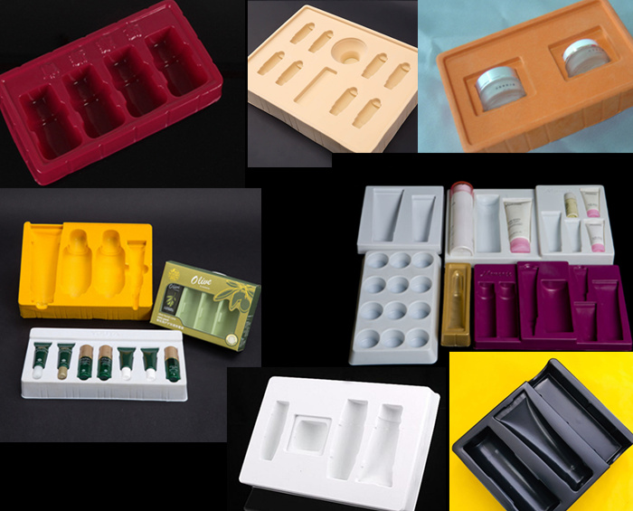 1、 化妆品吸塑包装的材质通常为PP,PE、K料、AS、ABS、压克力、PET等。